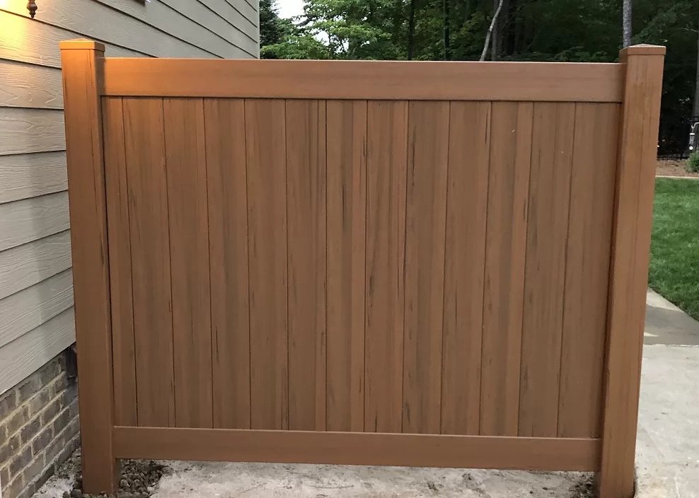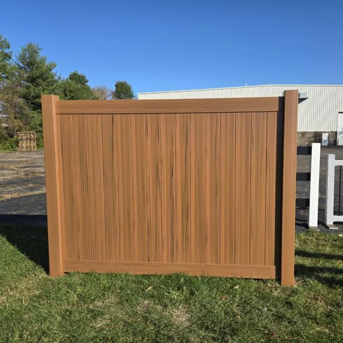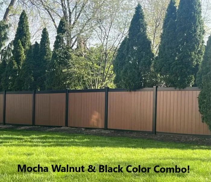 Heavy Duty Mocha Walnut Vinyl Privacy Fence Factory Direct. Fast Shipping. Contact us 24/7 for a free quote for your Privacy Fence project.