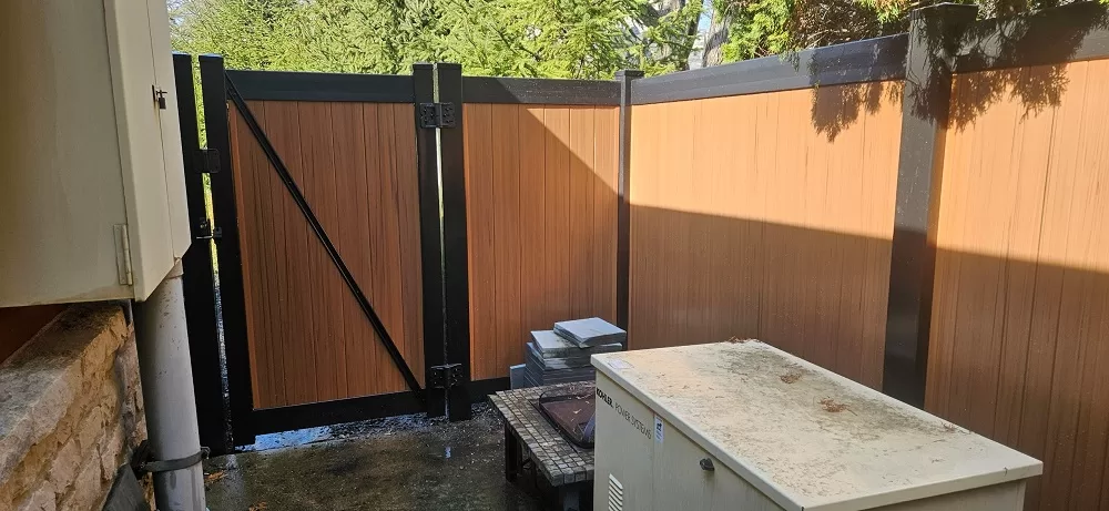 This fence gives you the rich, natural look of dark wood – without the hassle of maintaining real wood. It’s made from heavy-duty vinyl designed to look just like wood grain, so you get beauty, strength, and privacy all in one.